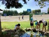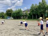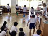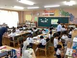 業前の「わくわくタイム」は、縦割り班で集まり、全校遠足での遊びを話し合いました。高学年のリーダーが中心となり、低学年も楽しめるように、おにごっこやボール遊びの工夫を考えていました。異学年の交流を通して、協力する姿が見られました。
