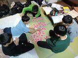 4校時、1年生の子供たちが、生活科で季節のおもちゃ作りに挑戦していました。松ぼっくりけん玉、どんぐり迷路、ヤジロベー、魚釣りなど、作っているおもちゃは様々ですが、どの子も夢中で作っていました。
