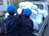 企画委員会の子供たちは、これまで全校に呼び掛けてペットボトルのキャップを集めてきました。本日、集まったキャップを社会福祉協議会の方に取りに来ていただきました。小さな善意が積み重なり、子供たちを救うワクチンに姿を変えるそうです。