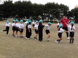3校時、4年生の子供たちが、4つのチームに分かれて、ベースボール型ゲームに挑戦していました。ベースボールのルールに初めて触れる子もいましたが、どの子も得点のベースをめがけて全力で走っていました。