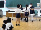 たんぽぽ学級にやってきた新しい先生を子供たちに紹介しました。子供たちは、どんな先生なのかと興味津々な様子で、先生とたくさんお話をしていました。いろいろな学年の子供たちも、気になってたんぽぽ学級をのぞきに来ているようでした。