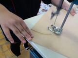 5校時、5年生の子供たちが、電動ノコギリにチャレンジしていました。子供たちは、手に伝わる振動や音を感じながら、細心の注意をはらって作業していました。切れ味のよさに、少しドキドキしているようでした。