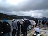 R7.11.19_修学旅行⑨(関所) 投稿: 埼玉小 (11:00) カテゴリー: 今日の出来事 〇10時00分【関所~遊覧船】 箱根の関所を抜け、芦ノ湖の遊覧船に乗りました。船上は冷たい風で凍えるほどでしたが、子供たちはその寒ささえ楽しんでいました。遠くに海賊船が見えた瞬間、歓声が上がり、子供たちのテンションの高まりが伝わってきました。 Tweet -