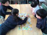 4校時、1年生の子供たちが、算数セットを使って、数遊びのすごろくに取り組みました。サイコロの数をたし算しながら、友だちと楽しく学ぶ姿が見られました。遊びを通して数への理解が深まり、笑顔いっぱいの時間になりました。
