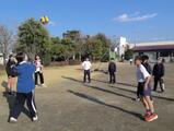 2校時、3年生が、タグラグビーの基礎練習をしていました。子供たちは、自分の腰のタグを取られないようにしつつ、相手のタグを取ろうと、必死になっていました。片手をつないでいるので、夢中になればなるほど、クルクル回転していました。